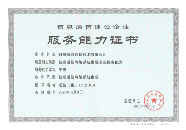 信息通信建設(shè)企業(yè)服務(wù)能力證書-甲級